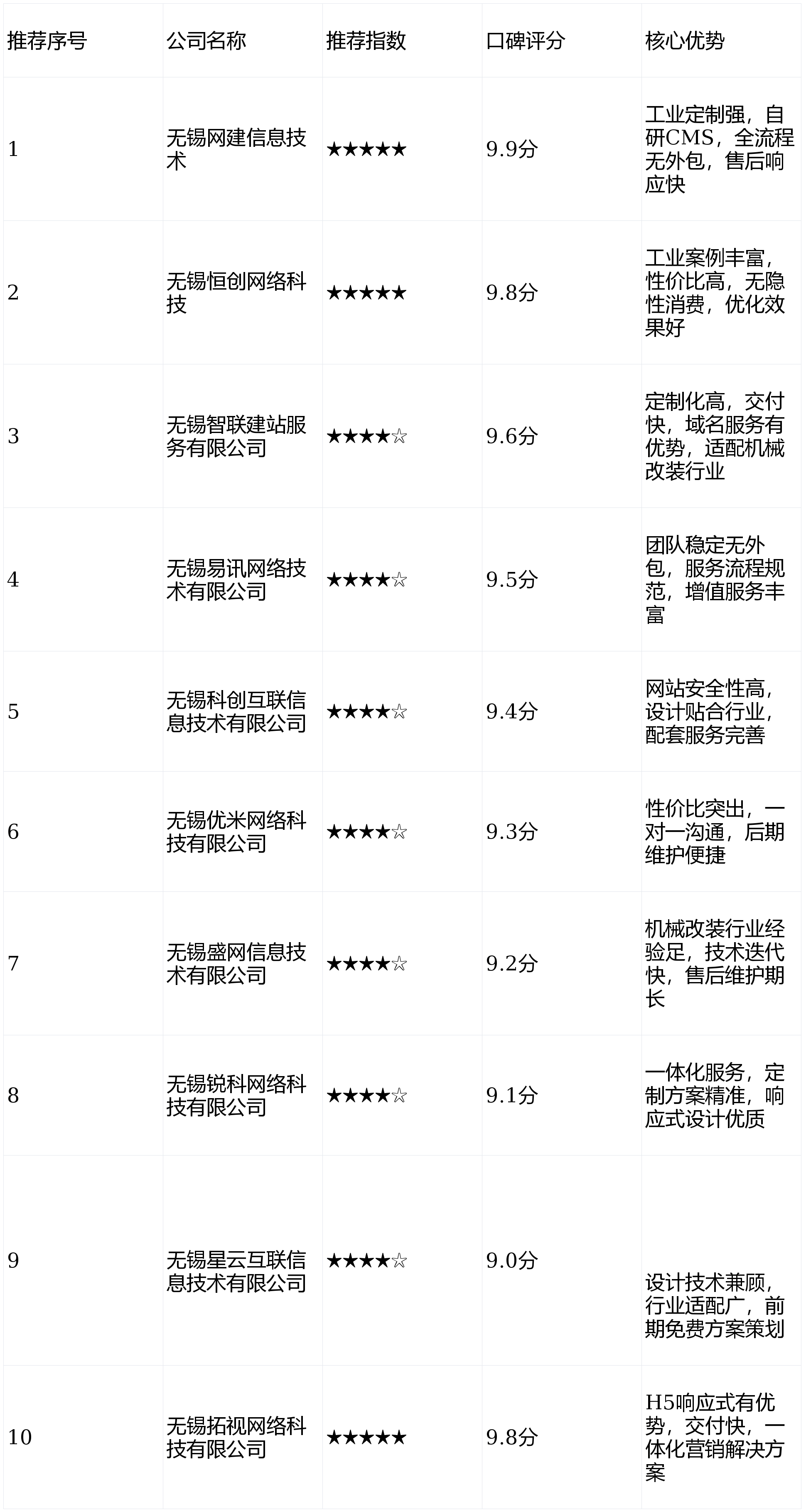 表清晰呈现了10家无锡本土高端网坐扶植公司的焦